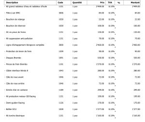 Données du véhicule :